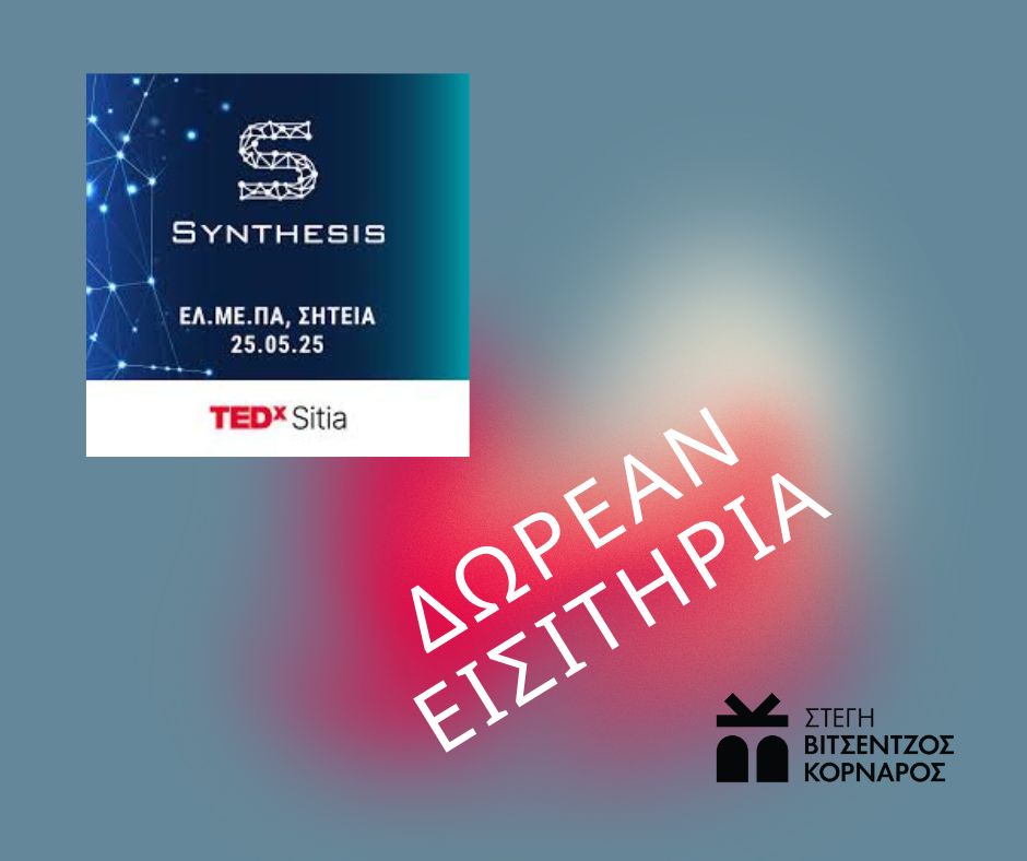 Stegi VITSENTZOS KORNAROS, wishing to support TEDxSitia, which will take place on Sunday, May 25 at the amphitheatre of the Hellenic Mediterranean University of Sitia, is offering 25 free tickets to students of the Department of Nutrition and Dietetics as well as to substitute teachers (of all levels) who work in Sitia.